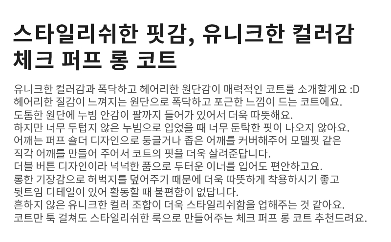 | 안감 | 있음 | 없음 | 기모가공 | |