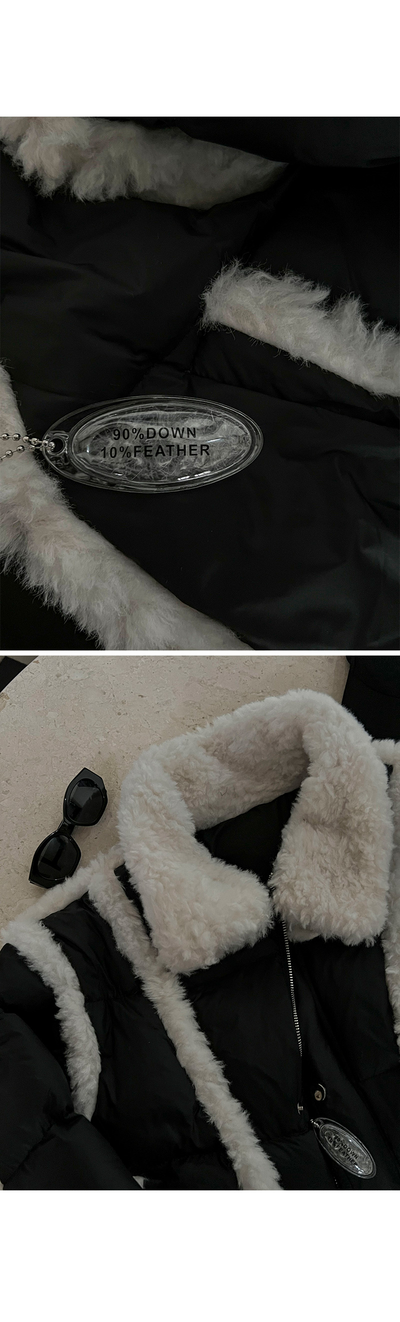 | 소재 | 폴리(polyester/涤纶100% / 충전재(Filler/填充剂):다운(down/下沉)90%+웰론(wellon/羽绒棉)10% |