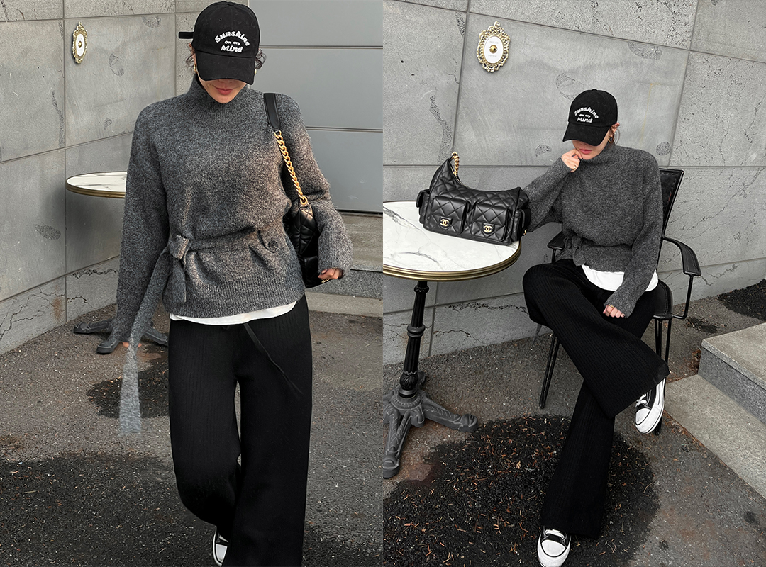 아듀벨 허리끈반폴라니트