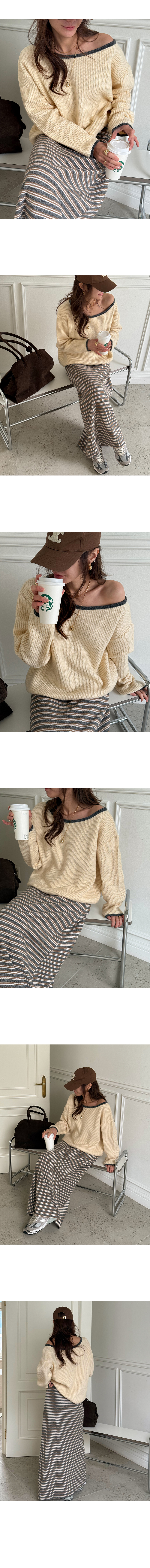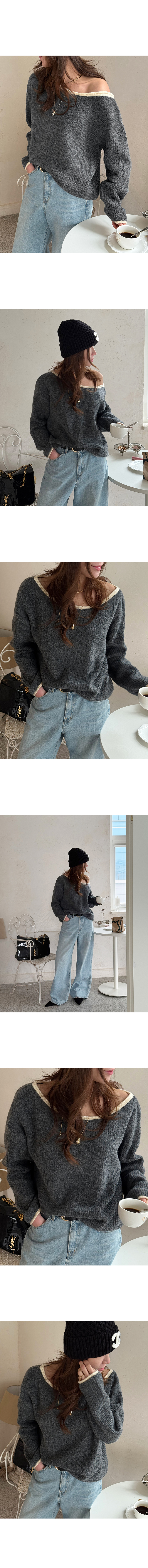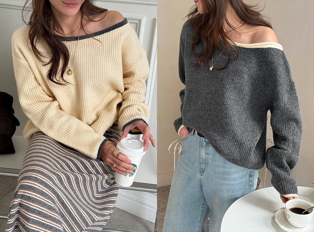 테콘우 배색오프숄더니트