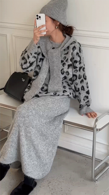 에올보 후드숄호피니트스커트세트