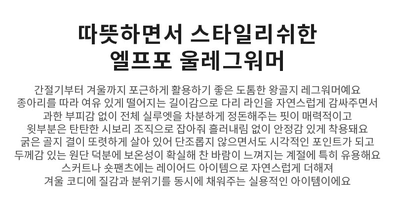 | 컬러 | 그레이(gray), 네이비(navy), 브라운(brown), 블랙(black), 아이보리(ivory), 와인(wine) |