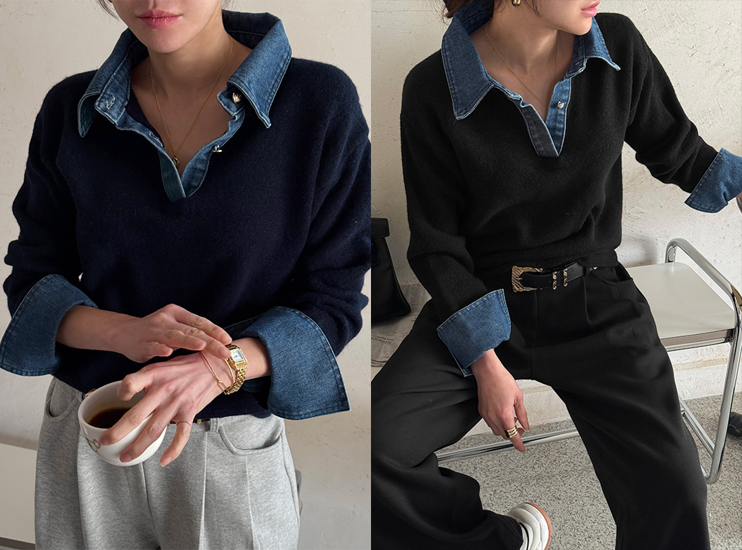 케문츠 카라배색니트