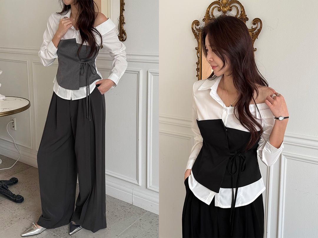 물타르 배색블라우스![]()