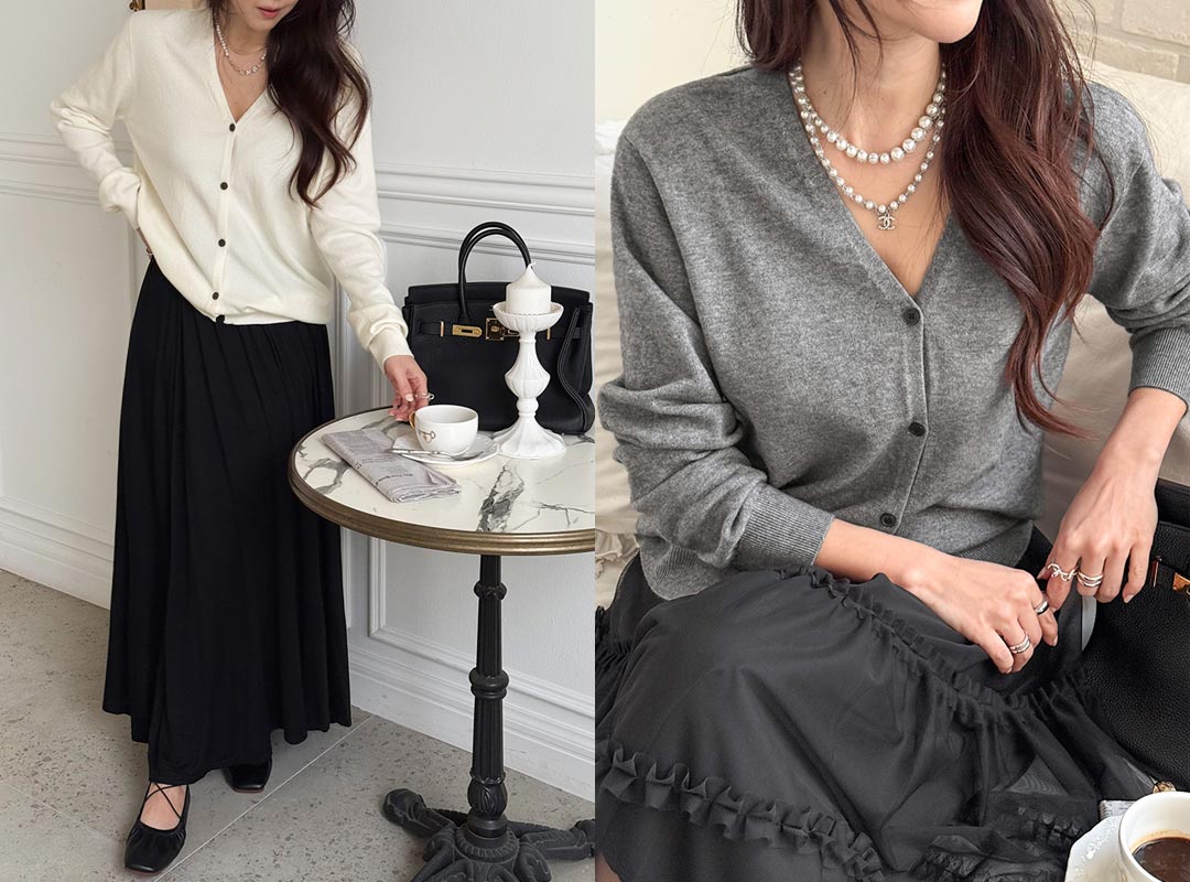 비쏠크 브이넥니트가디건