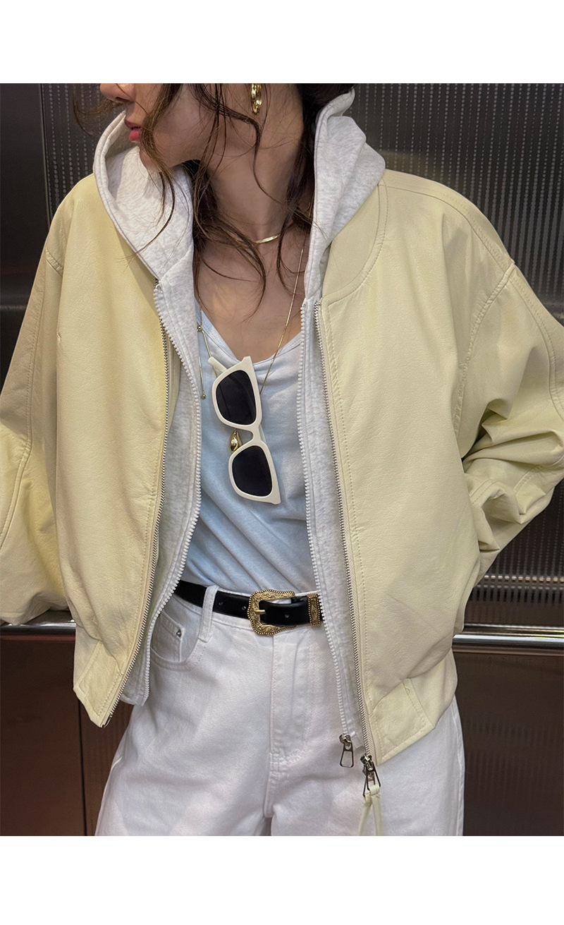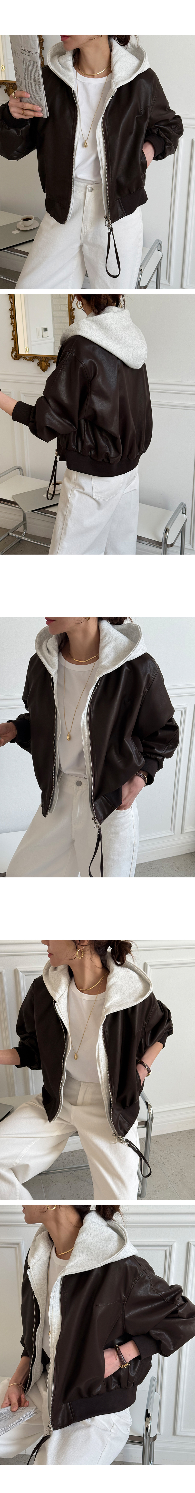 누아벤 레더후드점퍼